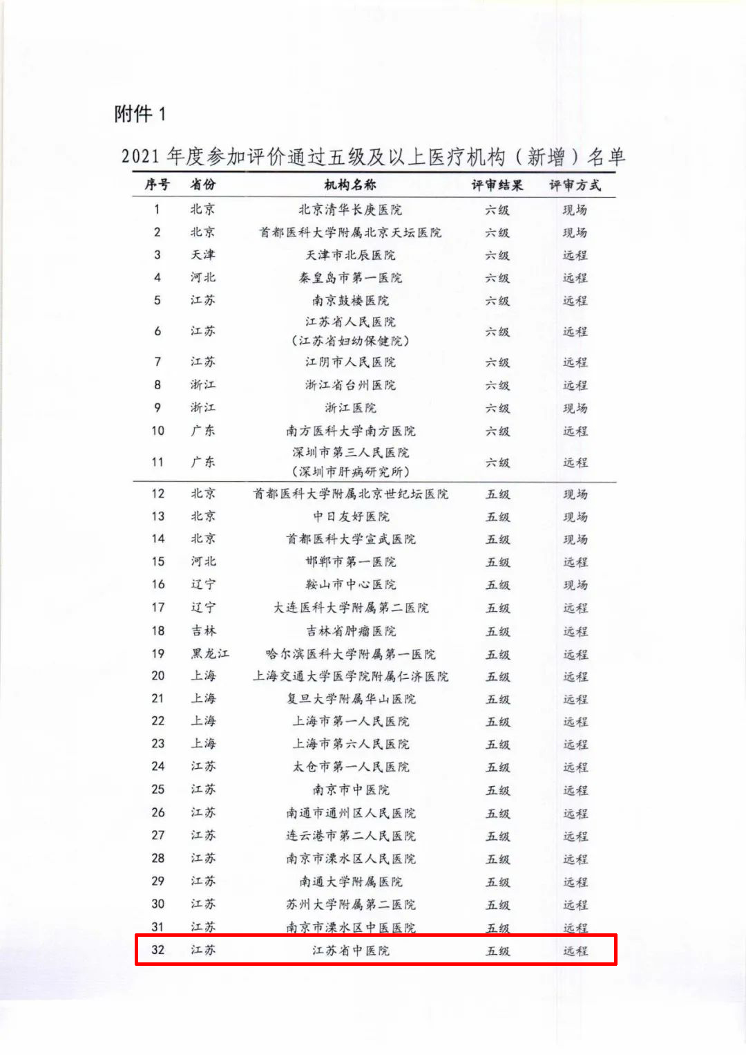 《通知》公示了2021年度參加評價通過5級及以上醫療機構(新增)名單,全國共有11家通過六級評審,60家通過五級評審,其中,由和仁科技服務支持的江蘇省中醫院、浙江大學醫學院附屬第四醫院順利通過電子病歷系統功能應用水平分級評價五級評審。在此,我們表示熱烈祝賀!