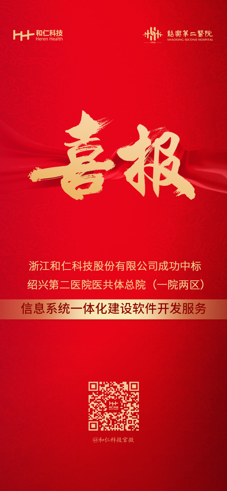 中標喜訊 | 和仁科技成功中標紹興第二醫院醫共體總院(一院兩區)信息系統一體化建設軟件開發服務