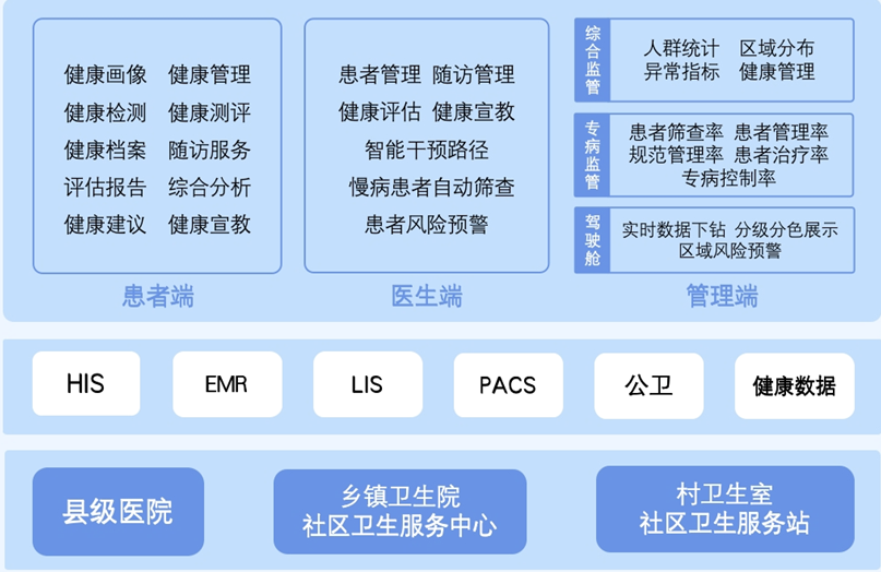 新型慢病管理系統體現了“以患者為中心”的設計理念,與緊密型縣域醫共體有機結合,促進慢病管理資源的配置與重構,有力推動科學管理、分級診療、家庭醫生服務,形成獨特的基層醫療健康生態系統,帶動基層醫養護、保險、醫藥產業、特色中醫藥等產業協同發展。