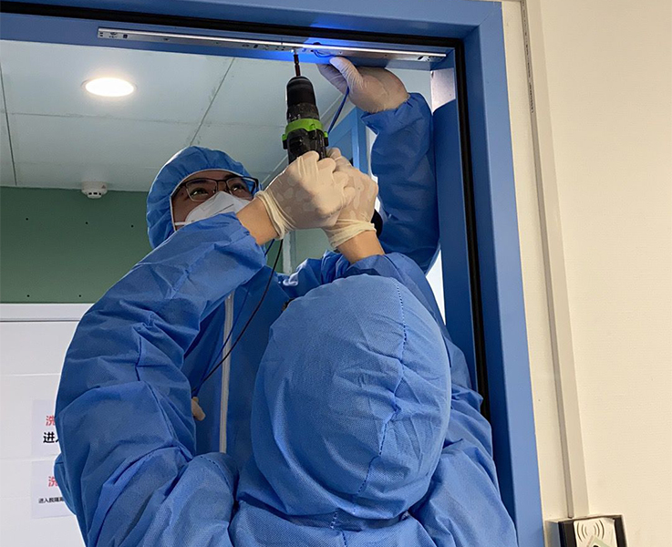 在武漢同濟(jì)醫(yī)院中法新城院區(qū)被指定成為“武漢市新型冠狀病毒感染的肺炎危重病人救治定點(diǎn)醫(yī)院”后,為滿足包含傳染病區(qū)等在內(nèi)的20個(gè)病區(qū)共計(jì)1000張床位的管控要求,以及光谷院區(qū)的830張床位的改造需求。和仁科技服務(wù)團(tuán)隊(duì)立即組織、協(xié)調(diào)資源,安排施工計(jì)劃和施工方案。同時(shí),為保障項(xiàng)目高質(zhì)量、高標(biāo)準(zhǔn)完成,增派工程師駐場(chǎng)溝通、協(xié)調(diào)施工方案細(xì)節(jié)。和仁科技服務(wù)團(tuán)隊(duì)克服時(shí)間緊、材料缺、施工難度大等問題,歷時(shí)兩天完成光谷院區(qū)的病房改造工作,六天完成中法新城院區(qū)的病房改造工作。