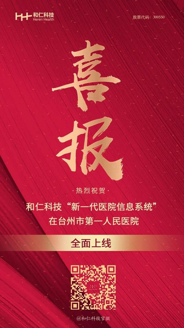 和仁科技承建的臺州市第一人民醫院“新一代云架構的一體化醫院信息系統”于7月31日14時切換急診系統,18時切換住院系統,現正式上線。