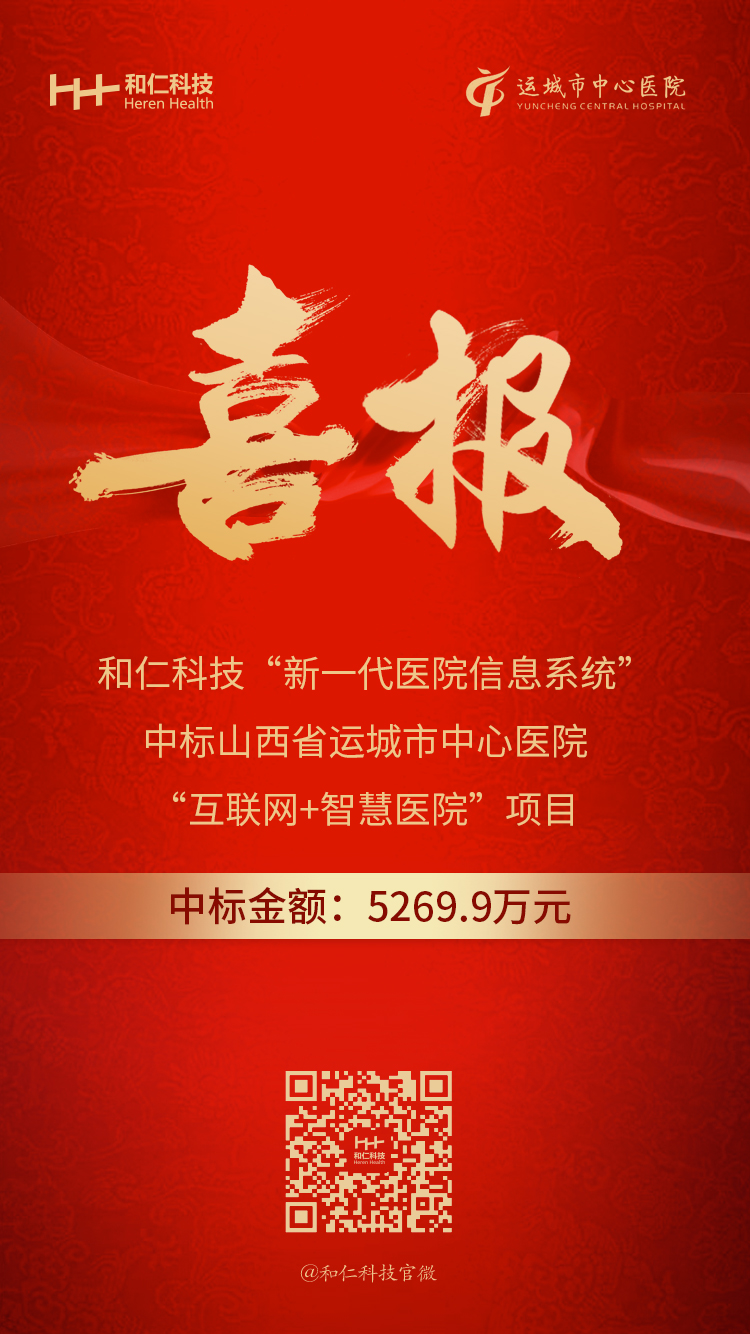 熱烈祝賀和仁科技“新一代醫(yī)院信息系統(tǒng)”中標(biāo)山西省運(yùn)城市中心醫(yī)院“互聯(lián)網(wǎng)+智慧醫(yī)院”項(xiàng)目,中標(biāo)金額5269.9萬(wàn)元。